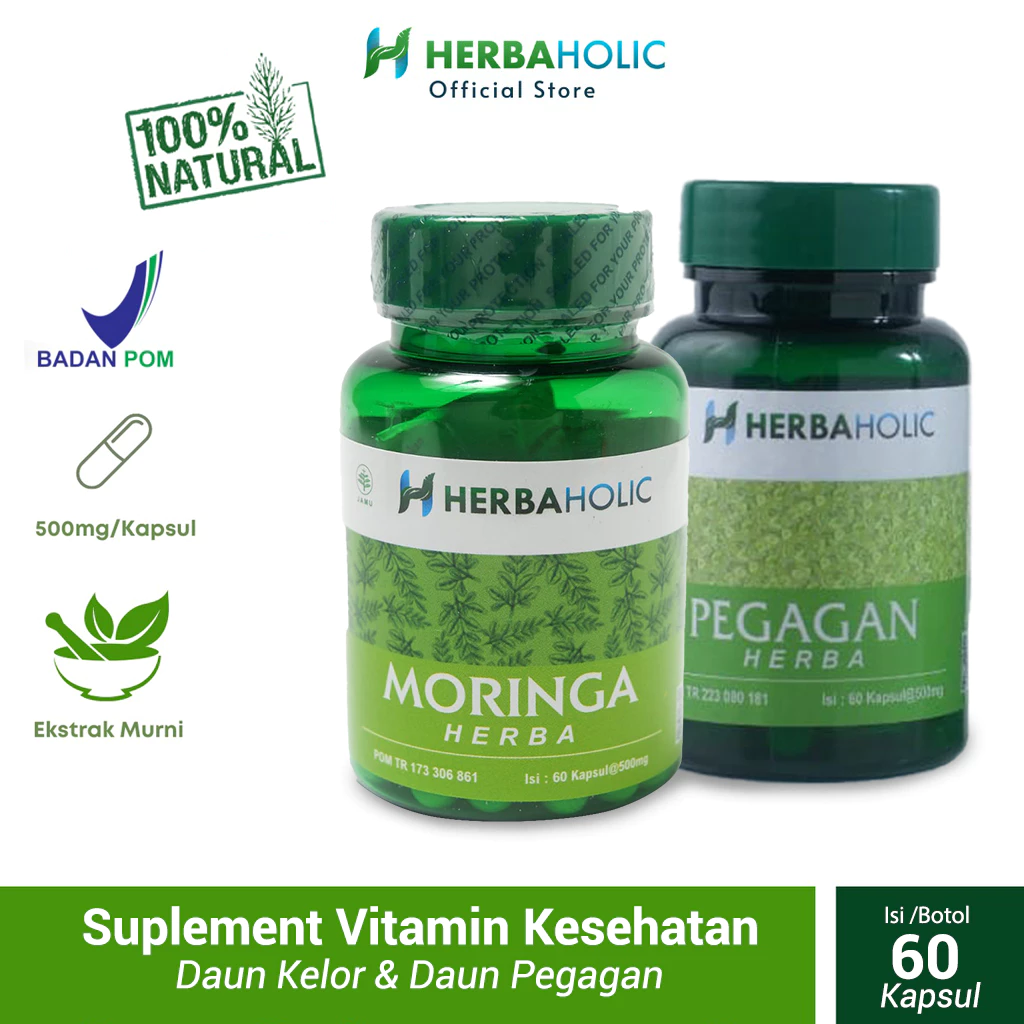 herbaholic.id bundling herba kapsul suplemen vitamin kesehatan ekstrak daun kelor pegaganHerbaholic.id Bundling Herba Kapsul Suplemen Vitamin Kesehatan Ekstrak Daun Kelor Pegagan